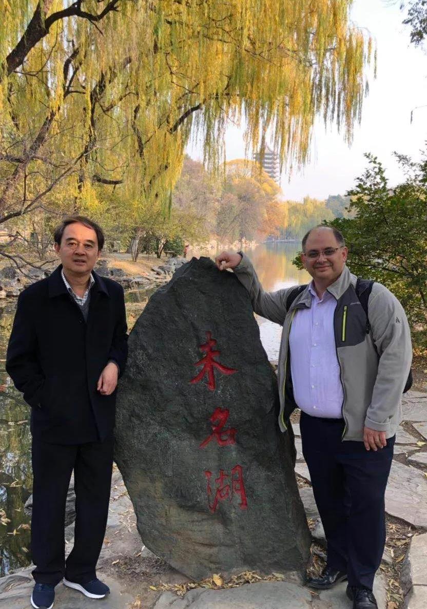 許中偉教授與Michael Milone在北京大學未名湖畔合影。