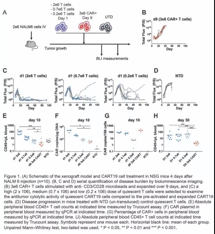 該研究團隊使用公認的急性淋巴母細胞白血病Nalm6模型進行試驗,發現由靜態T細胞轉導16小時后洗滌去除載體產生的CART19細胞表現出劑量依賴性的抗白血病活性,該活性只要注射小劑量即可持久2x10^5個T細胞。